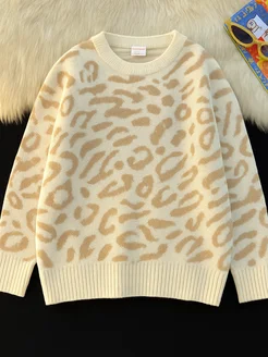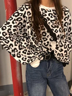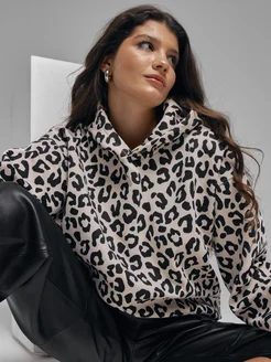 Свитер оверсайз леопардовый теплый без горла кофта с принтом