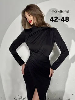 Платье осеннее облегающее праздничное вечернее с разрезом