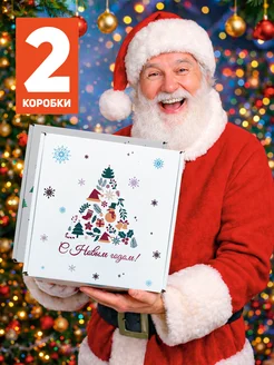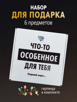 Подарочная коробка для подарка с наполнителем и гирляндой