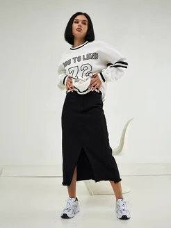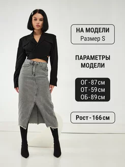 Юбка джинсовая миди с разрезом спереди Карандаш