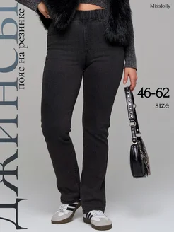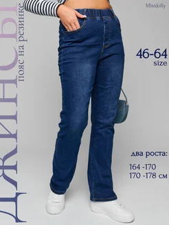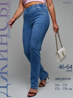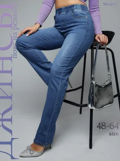 Джинсы на резинке широкие прямые больших размеров на высоких