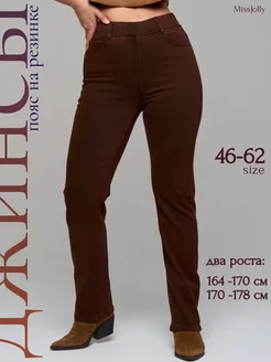 Джинсы прямые на резинке больших размеров стрейч коричневые