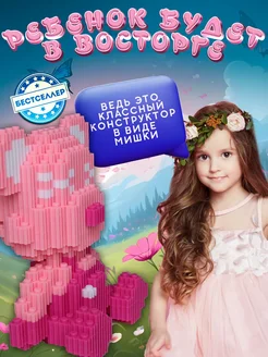 Средний конструктор из мини блоков розовый мишка bearbrick