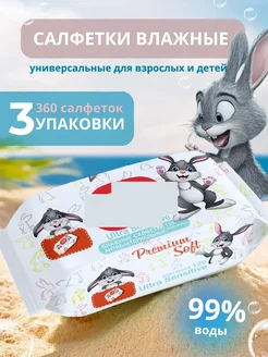 Детские влажные салфетки с клапаном 0+, 360 шт (120x3)