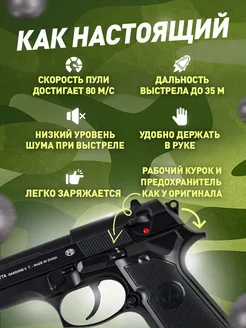 Спринговый пистолет с пульками Beretta M92 утяжелен железный