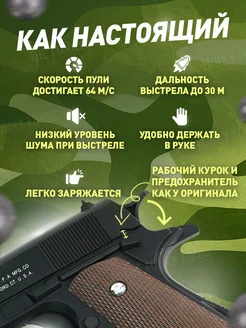 Спринговый пистолет с пульками Colt M1911 утяжелен железный