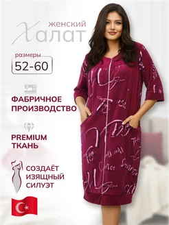 Халат домашний на молнии велюровый больших размеров Турция