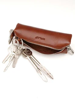 Ключница кожаная женская мужская чехол для ключей на молнии
