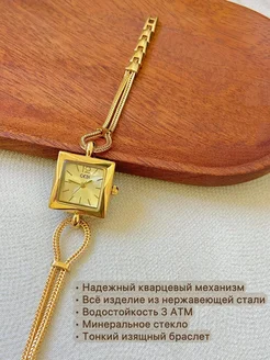 Наручные золотые женские кварцевые квадратные часы в коробке