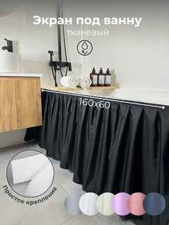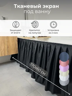 170х60 Штора в ванную экран тканевый аксессуары, цвет черный