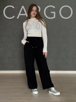 Брюки карго широкие на резинке с карманами