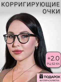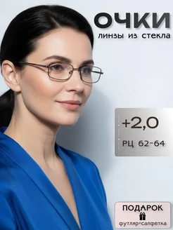 Очки для зрения +2.00 корригирующие стеклянные линзы