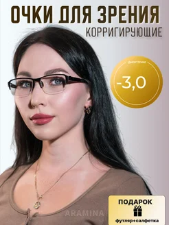Очки имиджевые для зрения -3 с диоптриями прозрачные