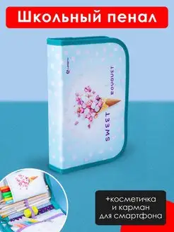 Школьный пенал для ручек карандашей и кистей с вкладышем