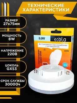 Лампочки светодиодные GX53 8Вт 6400K холодный свет 5шт