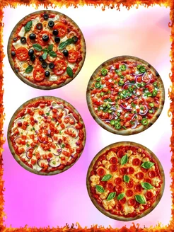 Магниты Пиццы на холодильник, 4шт, 58 мм