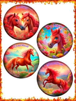 Магниты на холодильник Лошади, 4шт, 58 мм