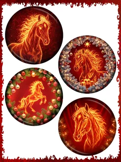 Магниты 2026 огненные Лошади, 4шт, 58 мм