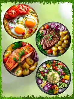 Магниты с изображением еды на холодильник, 4шт, 58 мм