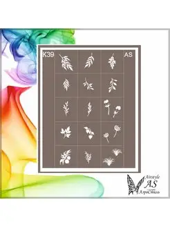 Трафареты для аэрографии на ногтях в маникюре, листья №2
