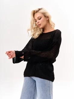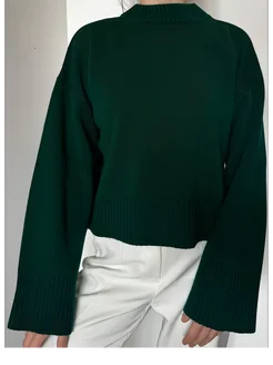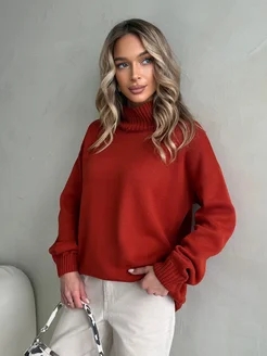 Серый свитер оверсайз с горлом вязаный удлиненный