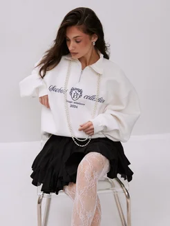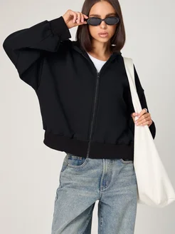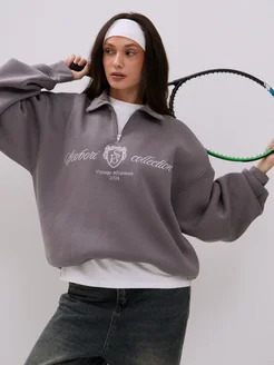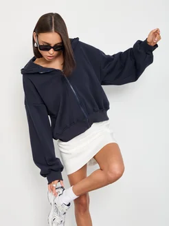 Худи зип оверсайз на молнии с капюшоном темно-синий