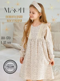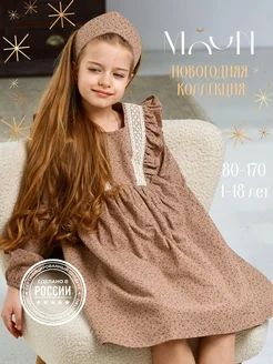 Платье для девочки зимнее фланелевое с рюшами и кружевом
