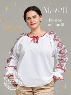 Рубашка косоворотка льняная белая с орнаментом с поясом