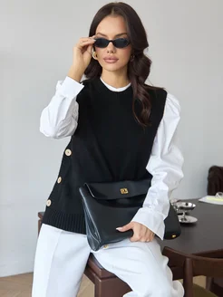 Жилет вязаный оверсайз на пуговицах удлиненный
