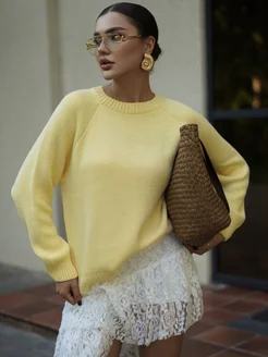 Джемпер вязаный укороченный оверсайз теплый