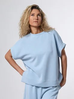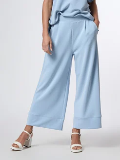 Брюки-кюлоты голубого цвета с эластичным поясом