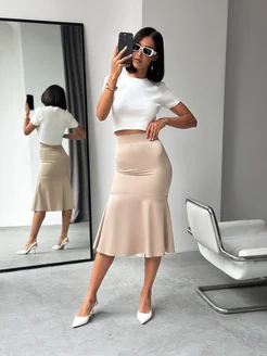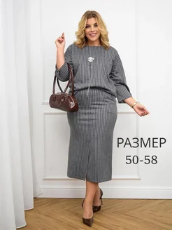 Костюм женский деловой трикотажный с юбкой офисный