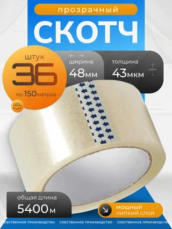 Скотч прозрачный 36 штук 150 метров