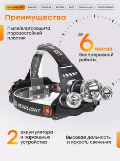 Фонарь налобный аккумуляторный на светодиоде LED XHP90. 2025