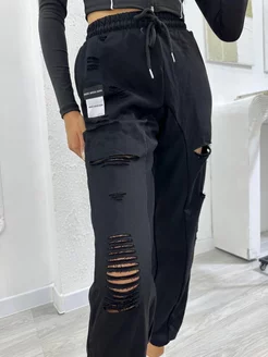 Брюки спортивные, штаны джоггеры оверсайз рваные