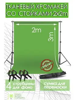 Хромакей зелёный фотофон из ткани 2х3м. со Стойками 2х2м