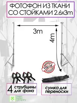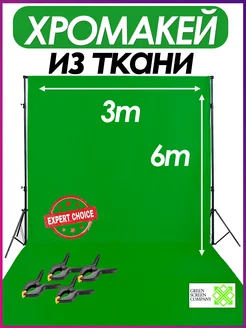 Хромакей зелёный фотофон из ткани 4х3м. со Стойками 2.6х3м