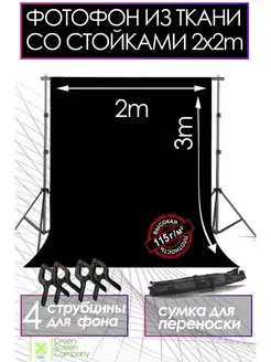 Чёрный фотофон из ткани 2х3м. со Стойками 2x2м