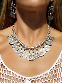 Набор колье на шею и серьги Бохо бижутерия индийский стиль