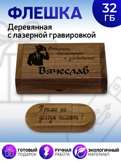 Флешка подарочная деревянная Вячеслав 32 Гб