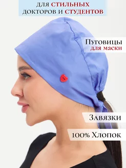 Медицинский колпак голубой с пуговицами-сердечками