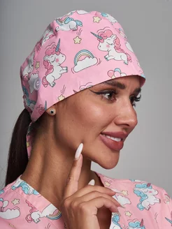 Медицинский колпак с принтом и пуговицами