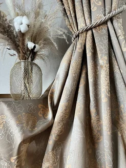 Шторы жаккардовые плотные с рисунком с цветами