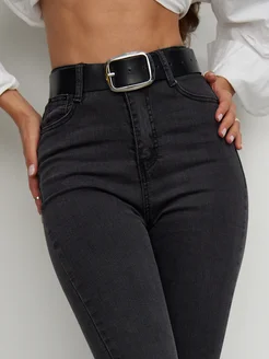 Джинсы женские серые зауженные с высокой посадкой скинни