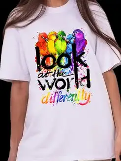 Футболка Женская С Надписью Попугаи, Краски, Надпись, футбол