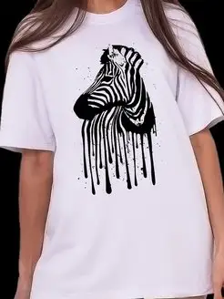 Футболка Женская 54 Размер Зебра, Подтеки, Черно Белая, футб