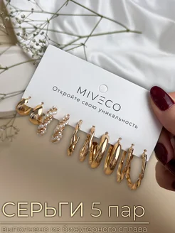 Серьги набор гвоздики пусеты и кольца 6 пар