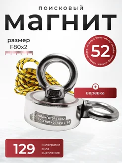 Поисковый магнит двухсторонний с веревкой 129 кг, неодимовый
