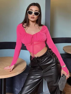 Топ с длинным рукавом сетка вечерний
