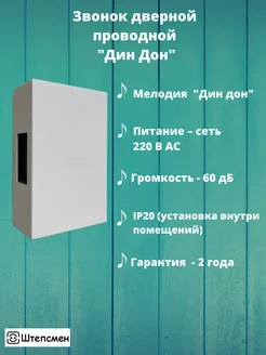 Звонок дверной проводной "ДИН ДОН" (без кнопки) эл. мех 220В